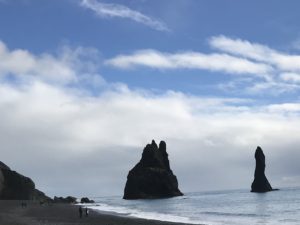 Reynisfjara Beach – world-famous, black sand beach on the south coast. There are beautiful basalt rocks jetting out of the water and several caves along the beach in the cliffs. This is not a swimming beach as there are many signs about the dangers of the waves (they called them “sneaky waves”). Plus, I think it would just be too cold!