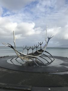 The Sun Voyager “Solfar” sculpture along the harbor front, representing a Viking ship