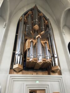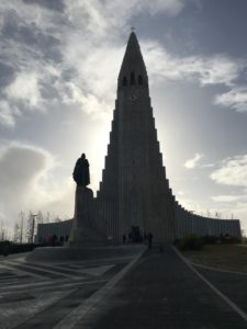 Hallgrimskirkja church, which rises 74.5 meters (244 feet) from the street, making it the tallest building in the city. The organ inside is amazing and worth a look. You can also go to the top for a view of the city. There is a monument to Icelandic explorer, Leif Ericsson outside the church as well.
